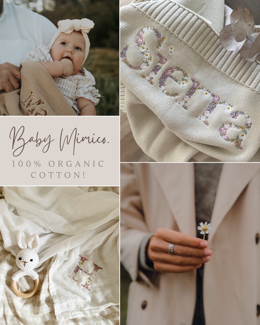 At Baby Mimico, every piece is thoughtfully designed and embroidered in Australia, heirloom-quality keepsakes made to hold life’s most precious moments.